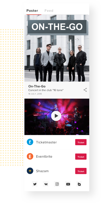 Newsfeed automatically aggregates latest posts from label's social accounts.