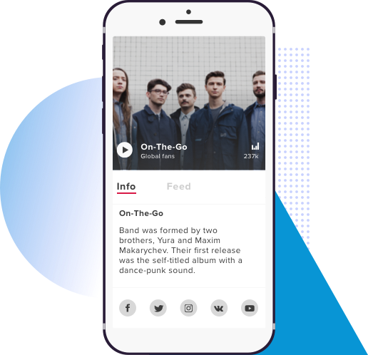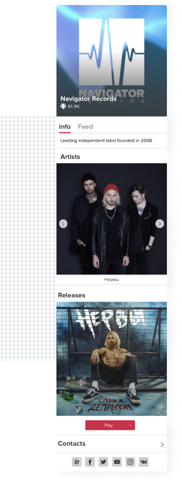 Newsfeed automatically aggregates latest posts from label's social accounts.