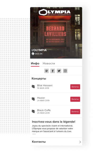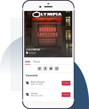 An easy to set up venue page with concert schedule and news